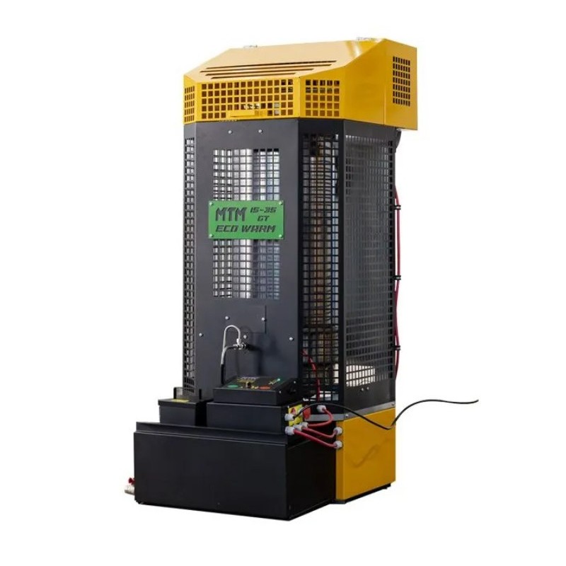Нагрівач повітря МТМ 15-35 GT ECO WARM має закриту камеру згоряння з додатковим оксигенаційним вентилятором та можливістю забору повітря з іншого приміщення або зовні. Завдяки цьому рішенню обігрівач може працювати в приміщеннях з трохи підвищеною запиленістю, наприклад, на лакофарбових заводах, а також витяжними установками, що утворюють негативний тиск.